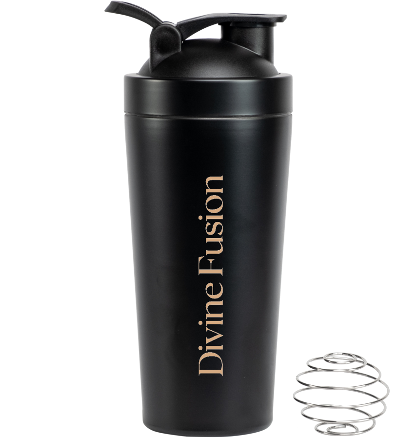 Mix your protein wellness shakes effortlessly with our Divine Fusion 600ml Stainless Steel Shaker Bottle, perfect for gym sessions, recovery, or on-the-go nutrition.
